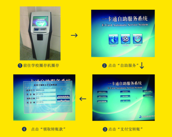 第二步:前往学校圈存机圈存,领取支付宝转账款