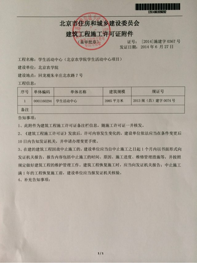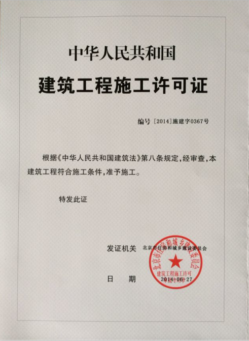 取得建筑工程施工许可证(证号:2014施建字0367号)。