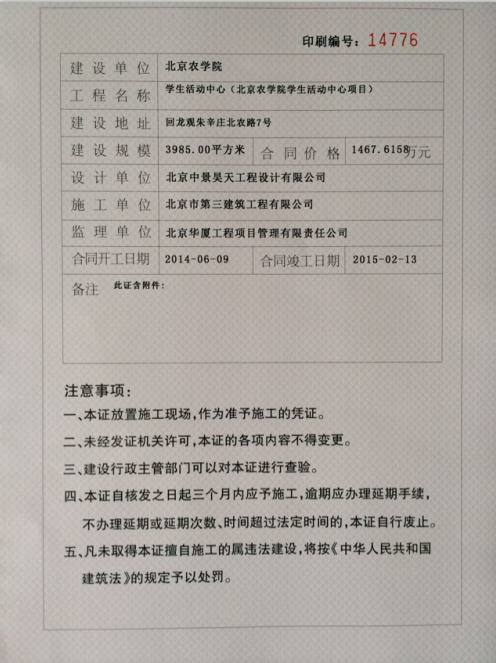 我校学生活动中心取得建筑工程施工许可证