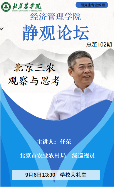 报告专家简介:任荣,现任北京市农业农村局二级巡视员,协助主管局长负责安全稳定。曾任原北京市农村工作委员会协调联络处处长、经济贸易处处长、农产品流通处处长、督查处处长、北京市农业农村局农村社会事业等工作。先后负责北京农村休闲农业与乡村旅游、农产品流通、低收入农户帮扶、农民增收、乡村体育等社会事业工作。对农业品牌建设、创意农业、休闲农业有兴趣。提出《农产品品牌核心内涵》、《农产品品牌金字塔架构》等观点,先后发表《创意农业探索与实践》等专著,在农民日报、新华财经等平台发表《十年畅想----北京农业风光无限》、《休闲农业的“四化”建设》、《裴书记和他的“左邻右舍”》、《休闲农业发展需要注意的几个问题》、《四好成就乡村剧变》、《乡村振兴需要花好三笔钱》等文章。曾任北京农学院经济管理学院和北京农业职业学院客座教授。