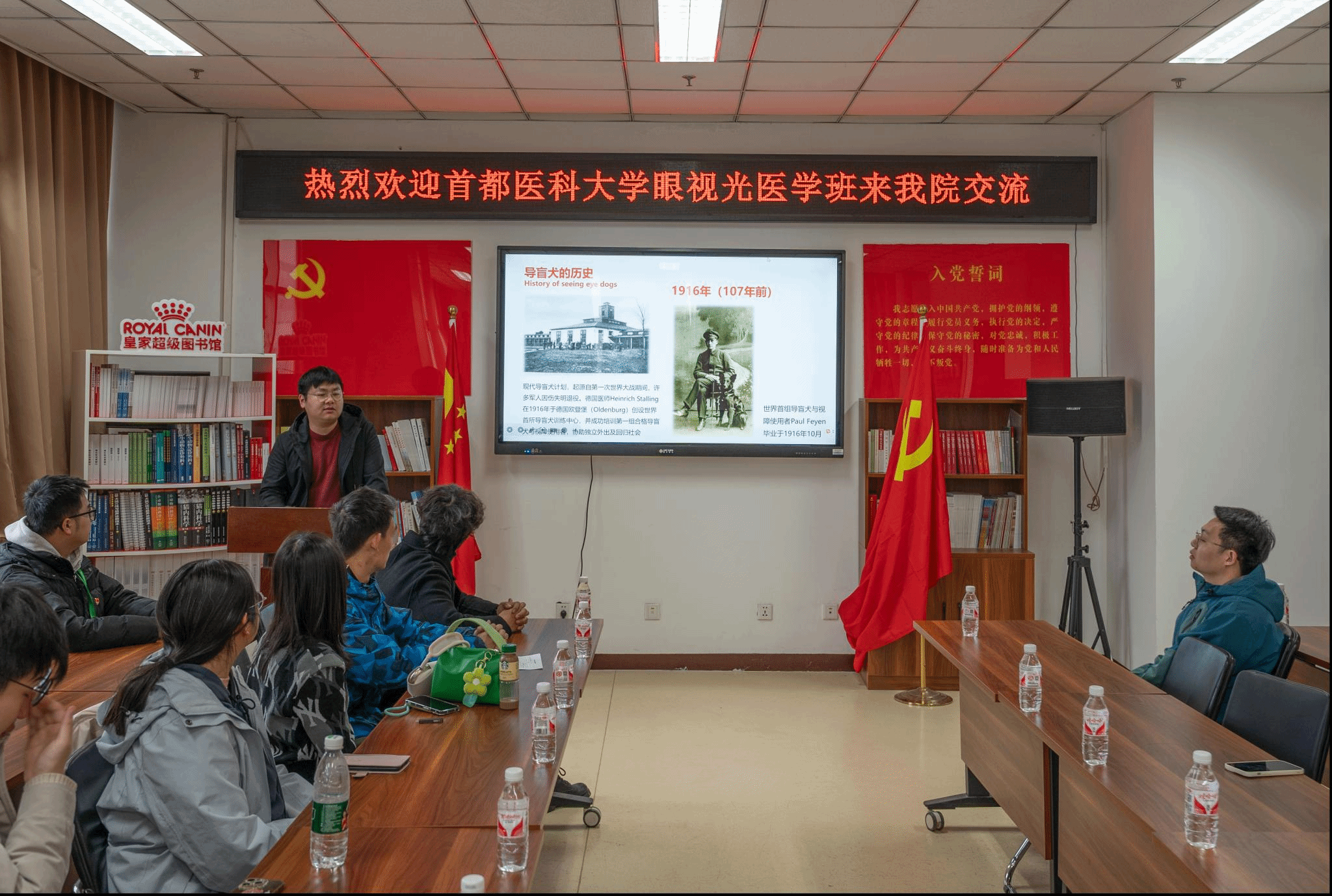3月15日,首都医科大学基础医学院23级眼视光医学班学生来我校导盲犬培训基地开展研学共建活动,本次活动以“深化校际合作,共促助残事业发展”为主题,为两校学子搭起学科专业融合、传播导盲犬文化的交流平台。首都医科大学眼视光医学班学生、导盲犬培训基地老师代表、动科/动医学院学生骨干代表共同参与活动。
