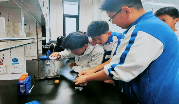 本模块以“从实验室到产业链”为主线,构建起植物科学的立体认知框架。在智能连栋温室,植科学院教师将初中物理压强原理与立体栽培系统结合,指导学生采收生菜新品种,直观理解高效利用有限空间的现代农业智慧。在实验室,教师以学生们现场采摘的生菜为切入点,延伸讲解种质资源对国家粮食安全的重要意义,学生们在花青素提取实验中,通过调节pH值观察溶液由蓝变红的奇妙现象。