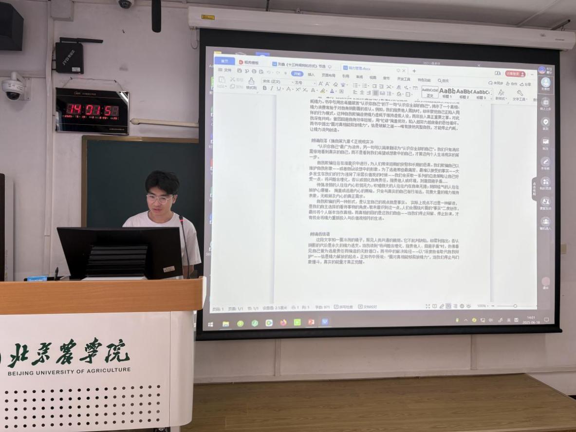 《习近平的七年知青岁月》通过对一系列采访实录的整理,生动展现了习近平总书记在梁家河的知青岁月。在艰苦的环境下,习近平总书记与乡亲们同甘共苦,一起打井、修淤地坝、建沼气池等,为改善当地生活条件付出诸多努力。姜久舜同学为我们分享了青年习近平总书记身上展现出的坚定信念、顽强意志和为民情怀,带领我们走进那段知青岁月,从总书记的经历中汲取力量,思考如何在自己的人生道路上,面对困难砥砺前行,树立正确的价值观和使命感。