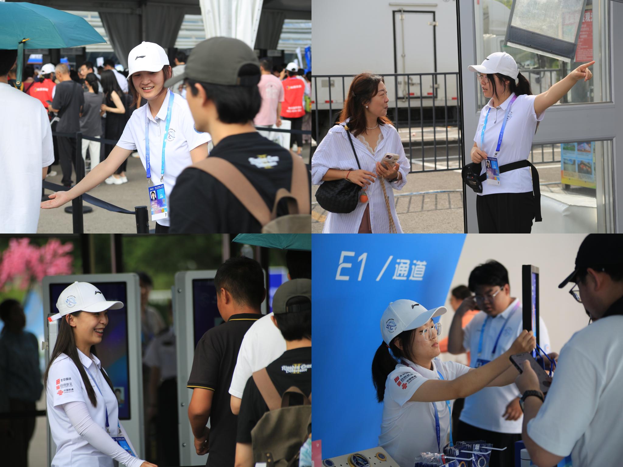 自8月14日开幕起,志愿者们便坚守在国家速滑馆(“冰丝带”)的南部、北部及中心区通行处。他们高效疏导工作人员流线,细致协助展台布置,严谨进行身份核验、注册与证件查验,从晨曦到夜幕始终以饱满的热情和专业的素养确保赛事秩序井然,成为了赛场内外一道亮丽的青春风景线。