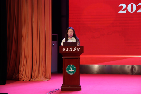 新生代表李嘉桐的发言充满青春朝气,她分享了自己对大学生活的向往,表达了尽快适应大学生活、在专业领域深耕探索的决心,其真挚的话语引发了在场新生的强烈共鸣。