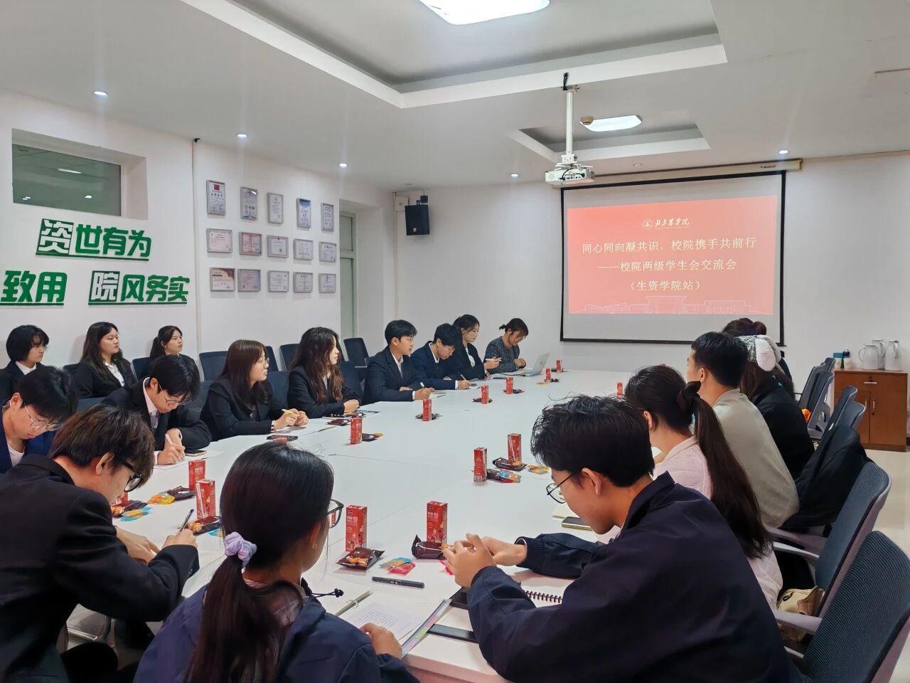 为深化校院两级学生会组织联动,凝聚工作共识,共谋合作新契机,近日,以“同心同向凝共识 校院携手共前行”为主题的校院学生会交流会,在生资楼B216会议室成功举行。校学生会指导教师瞿少白、生资学院学生会指导教师申维维、校学生会主席团及各部门代表、生资学院学生会主席团及各部门代表参会,围绕校院学生工作展开深入交流,共商发展方向。会议由校学生会主席团成员唐艺主持。