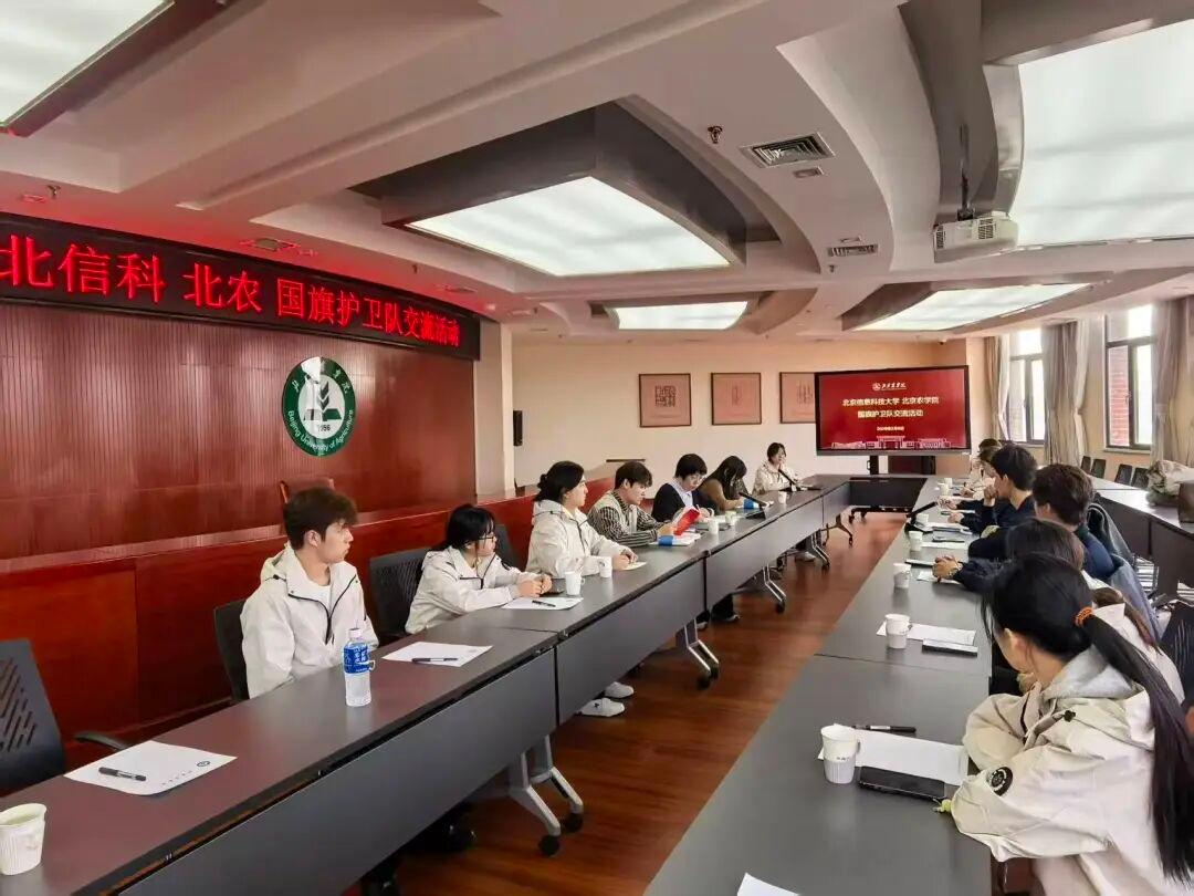 在紧张集训之余,我校国旗护卫队还与北京信息科技大学国旗护卫队开展了深入的校际交流活动。作为上届首都高校运动会的承办单位,北京信息科技大学国旗护卫队分享了宝贵的组织经验与实战心得。双方队员围绕队列训练、日常管理、赛事准备等内容进行了热烈讨论与现场演示,在互学互鉴中进一步凝聚了守护国旗尊严、弘扬爱国精神的使命共识。